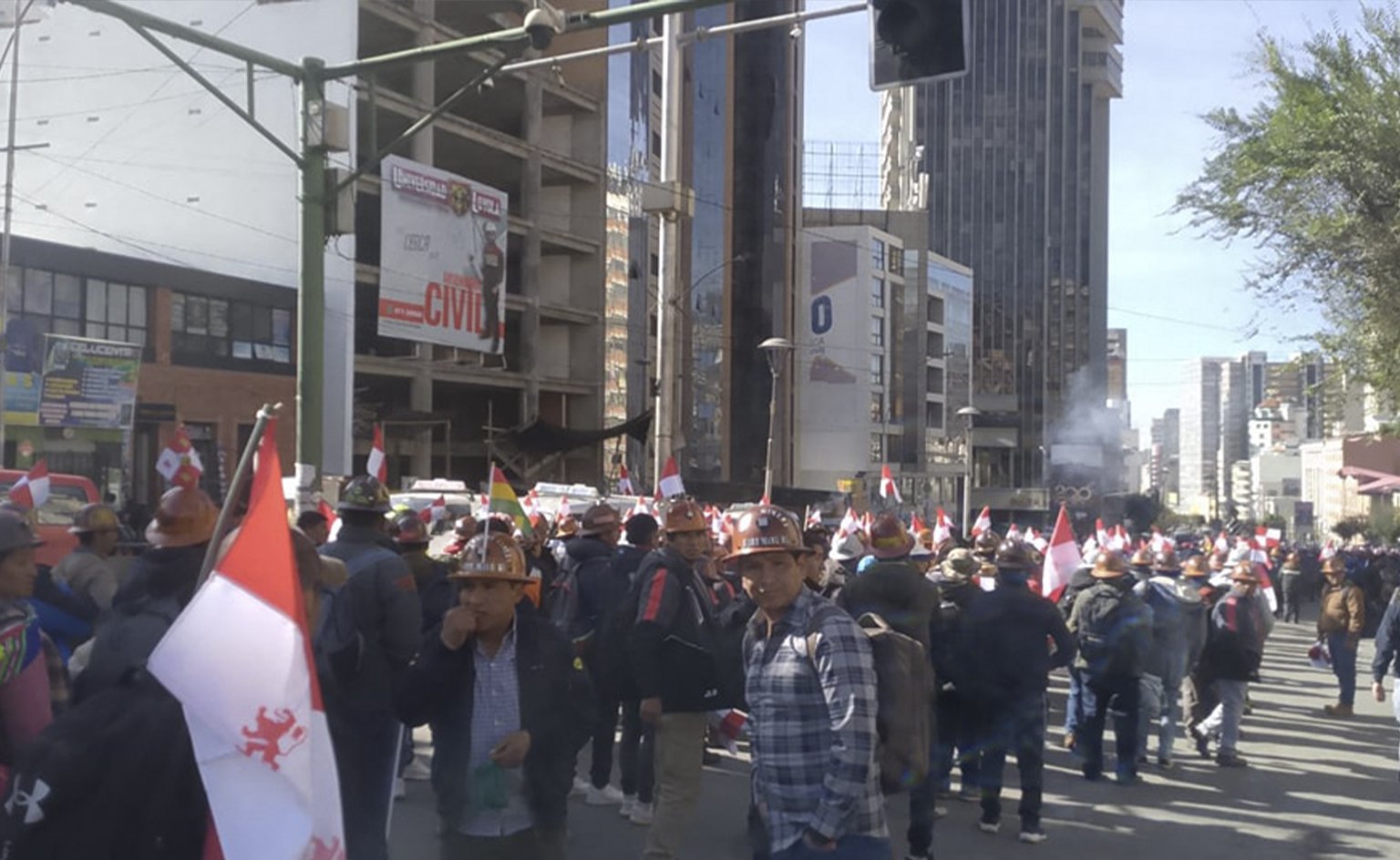 La Paz, 23 de abril de 2025 – Cooperativistas mineros afiliados a FENCOMIN y FEDECOMIN llegaron este miércoles a la ciudad de La Paz, para protagonizar una movilización independiente y paralela a la del Comité Multisectorial. Los mineros instalaron una vigilia y bloqueos en instituciones públicas como la Corporación Minera de Bolivia (Comibol), el Ministerio de Economía, Hidrocarburos, Minería, AFCOOP y la Autoridad Jurisdiccional Administrativa Minera (AJAM), exigiendo el abastecimiento regular de combustible, la dotación de material explosivo y la regulación de precios de insumos clave para sus actividades.