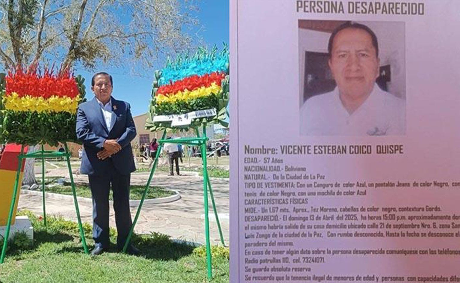 Bolivia, 25 de abril de 2025 – El viceministro de Régimen Interior y Policía, Jhonny Aguilera, informó este jueves sobre el hallazgo del cuerpo sin vida del cónsul boliviano en La Quiaca, Vicente Esteban Coico Quispe, quien había sido declarado desaparecido el 13 de abril. Coico, de 57 años, fue encontrado en la ciudad fronteriza de La Quiaca, Argentina, donde se coordinarán acciones con la Policía Federal para esclarecer las circunstancias de su muerte.