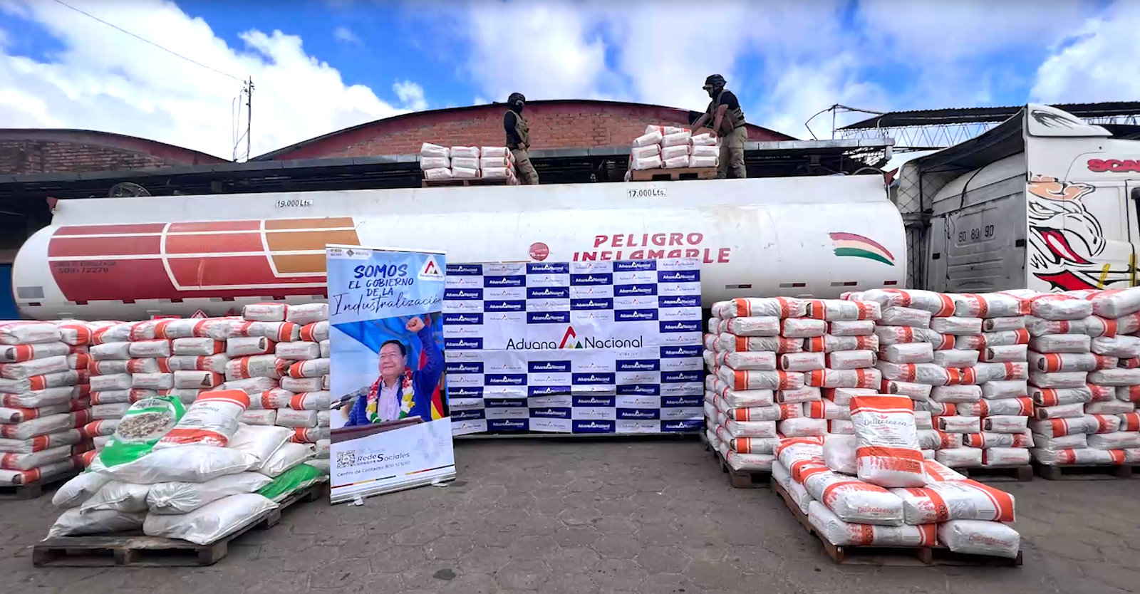 Santa Cruz, 8 de mayo de 2025. La Aduana Nacional decomisó 26 toneladas de harina de contrabando que eran transportadas en el interior de una cisterna modificada, originalmente destinada al transporte de combustible. El operativo se realizó en una carretera de Santa Cruz y dejó un perjuicio estimado al contrabando de aproximadamente Bs 80.000.