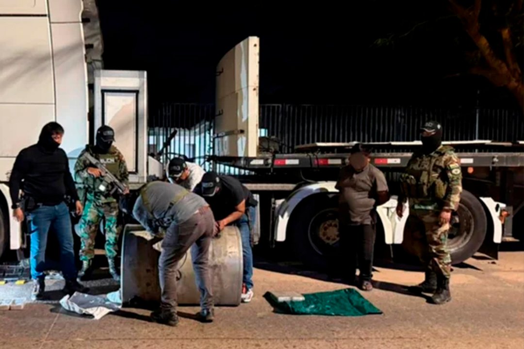 Santa Cruz, 22 de mayo de 2025 — Un camión de alto tonelaje fue interceptado por la Fuerza Especial de Lucha Contra el Narcotráfico (Felcn) con 171 paquetes de droga camuflados en el tanque de combustible. El operativo se realizó la noche del miércoles en la intersección del cuarto anillo y avenida Paragua, en el marco del plan “Vías Seguras”.