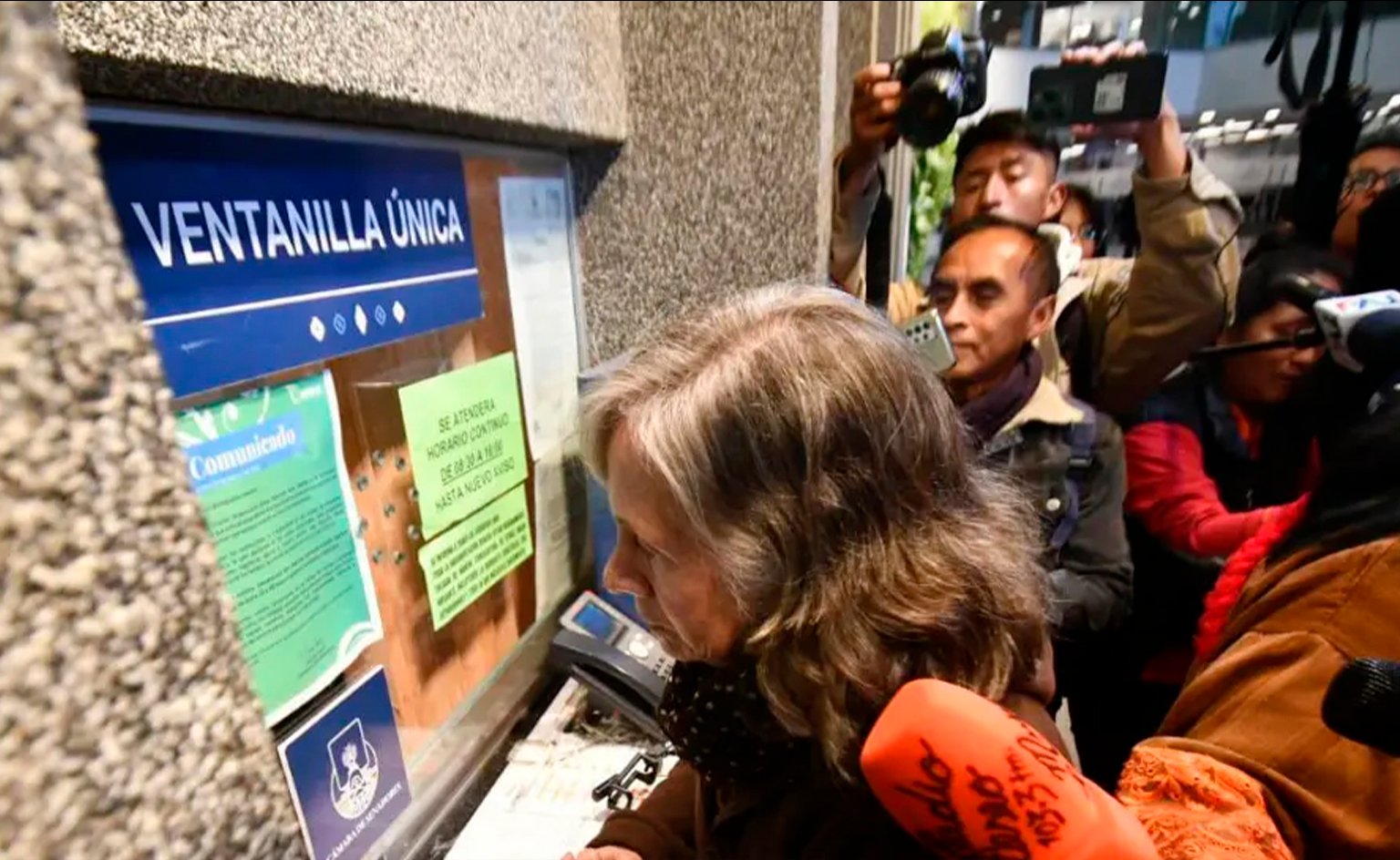 La Paz, 27 de mayo de 2025. Helen Álvarez, madre de Andrea Aramayo —víctima de feminicidio en 2015—, presentó este lunes documentos dirigidos a Andrónico Rodríguez, candidato presidencial por la Alianza Popular, en los que objeta la postulación de Mariana Prado como candidata a la Vicepresidencia. La entrega fue realizada en instalaciones del Legislativo, en la ciudad de La Paz.