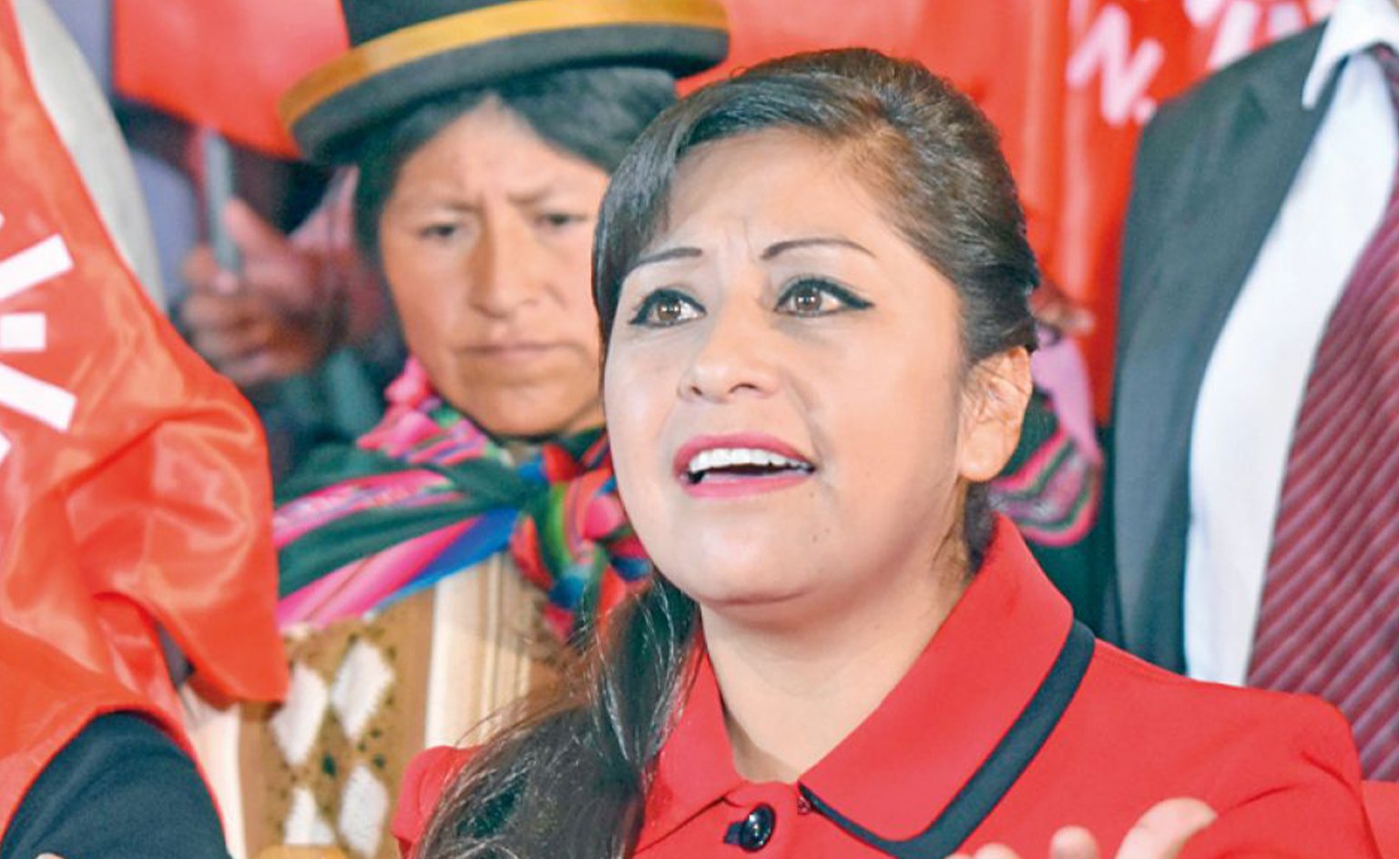 “Ruth Nina antes decía que Evo Morales es un dictador y que había que sacarlo, pero ahora la vemos abrazándolo. No sé qué le han ofrecido, pero quisiera preguntarle por qué, si antes era opositora, ahora besa la mano de Evo Morales”, cuestionó Santos Quispe.