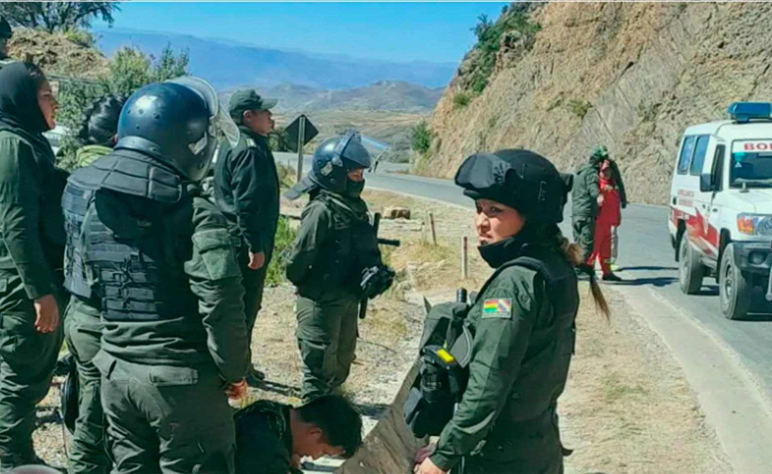 Cochabamba, 4 de junio de 2025. La Policía Boliviana denunció este martes que un grupo de efectivos fue emboscado durante un operativo de desbloqueo en la zona de Bombeo, kilómetro 72 de la antigua carretera entre Cochabamba y Santa Cruz. El hecho se produjo en el marco de las movilizaciones convocadas por sectores afines a Evo Morales.