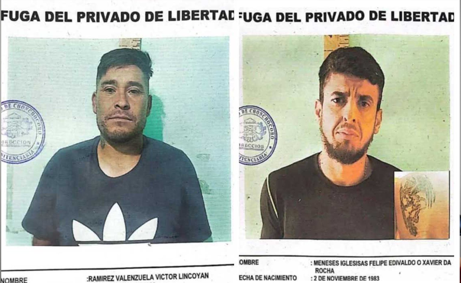 Los fugados son Felipe Edvaldo Meneses Iglesias, de nacionalidad brasileña, condenado a 30 años por asesinato y vinculado al grupo criminal Primer Comando Capital (PCC), y Víctor Ramírez Valenzuela, ciudadano chileno sentenciado por robo agravado. Meneses ya había protagonizado fugas previas, incluyendo un incidente en 2023 donde asesinó a un policía durante su escape.