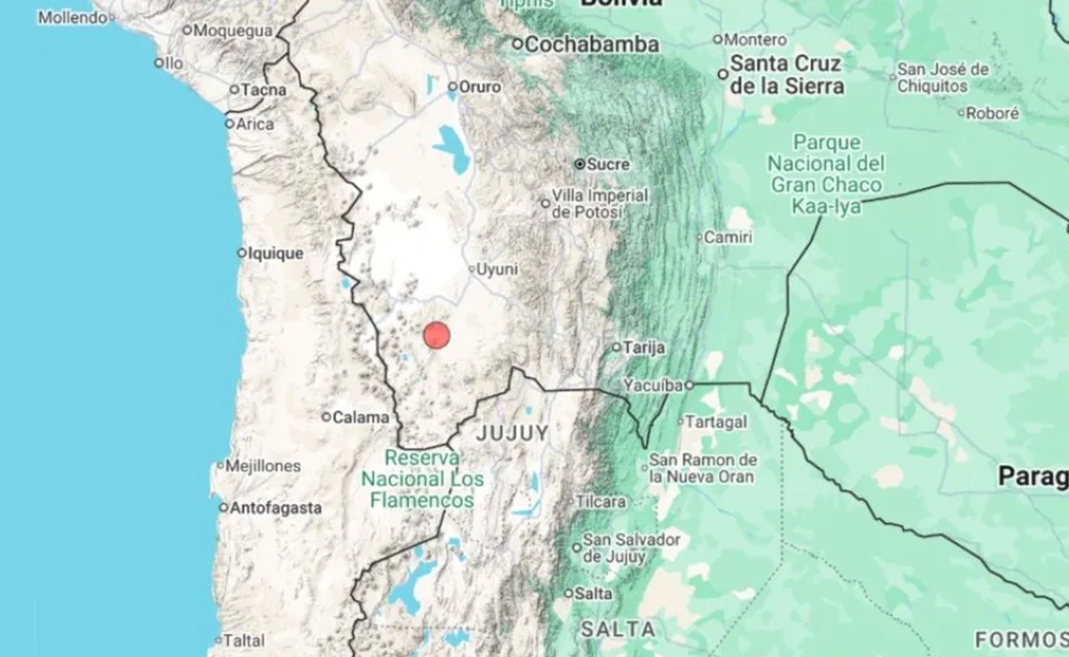 Potosí, 3 de julio de 2025 – La madrugada de este jueves se registró un sismo de magnitud 5,4 en la provincia Nor Lípez del departamento de Potosí, específicamente a 16 kilómetros de Culpina y a 28 kilómetros de la mina San Cristóbal. El movimiento ocurrió a la 01:41 horas con una profundidad de aproximadamente 179 kilómetros, lo que hizo poco probable que fuera sentido en la superficie o causara daños.