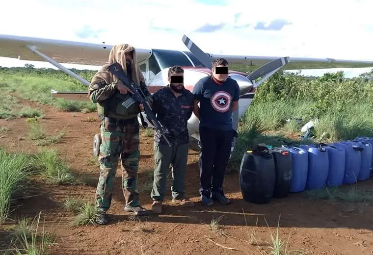 El personal policial secuestró al aeronave Cesna de color blanco, se aprehendió a dos personas, al piloto y copiloto, ambos de nacionalidad brasileña. Además, se halló en el interior de la nave, ocho bodones de 60 litros de AV-Gas.