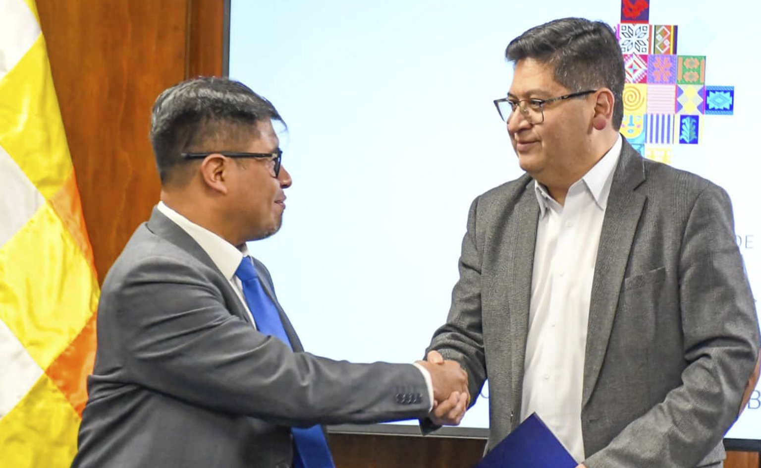 La Paz, 25 de agosto de 2025.- En una ceremonia realizada este lunes, el ministro de Economía y Finanzas Públicas, Marcelo Montenegro, posesionó a Darwin Ugarte Ontiveros como nuevo gerente general de la Gestora Pública de la Seguridad Social de Largo Plazo. Ugarte asumió el cargo en presencia de los viceministros de Política Tributaria, Miguel Ángel Ríos, y de Pensiones y Servicios Financieros, Jhonny Morales, así como de la autoridad saliente Jaime Durán.