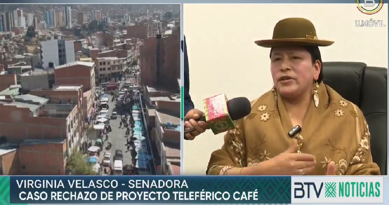 La senadora Virginia Velasco expresó su indignación por el rechazo en el Senado del proyecto de ley que permitiría la ampliación del Teleférico Café en La Paz, acusando a un supuesto pacto político entre Camachistas y Comunidad Ciudadana de obstaculizar el desarrollo del país.