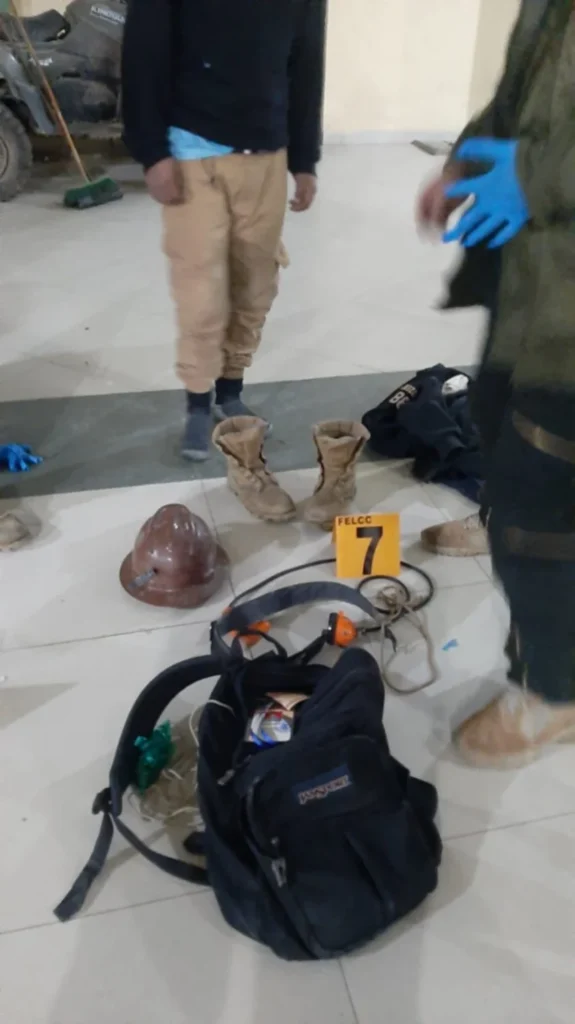 La situación se desató cuando varias personas lograron evadir el control Policial de Portería Santa Elena y se dirigieron hacia la Bodega Barrilla. La alerta movilizó a la empresa de seguridad privada contratada por la minera, que logró interceptar a 13 hombres. Al realizar el cacheo correspondiente, se descubrió que algunos de los detenidos llevaban una sustancia rocosa y arenosa, similar a mineral, escondida en sus botas de combate.