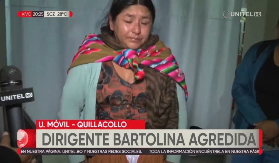 Margarita Fuentes, secretaria de actas de la Federación Bartolina Sisa, denunció que fue agredida en el punto de bloqueo de Parotani, en la carretera que une Cochabamba con el occidente del país.