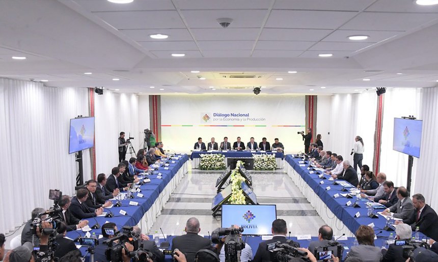 Representantes de importantes gremios empresariales, como la Cámara Agropecuaria del Oriente (CAO), la Cámara de Industria, Comercio, Servicios y Turismo de Santa Cruz (Cainco), la Cámara Nacional de Industrias (CNI), la Confederación de Empresarios Privados de Bolivia (CEPB), así como de pequeñas y microempresas, acudieron al llamado del Gobierno para presentar propuestas y contribuir al fortalecimiento de la economía nacional.