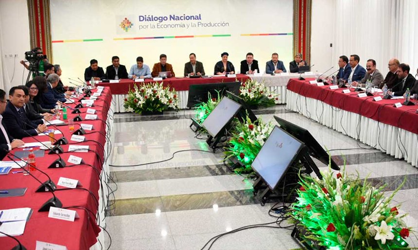 La Paz, 16 de agosto de 2024 – Este viernes, el presidente Luis Arce y representantes del sector empresarial reanudaron el Diálogo Nacional por la Economía y la Producción, que había sido declarado en cuarto intermedio el pasado miércoles. La reunión se llevó a cabo en la Casa Grande del Pueblo, con el objetivo de continuar las discusiones sobre la situación económica del país.