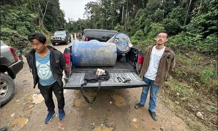 Durante el operativo, la Unidad Móvil de Patrullaje Rural (Umopar) encontró en posesión de los detenidos un arma de fuego calibre 9 mm y la suma de 78.200 bolivianos, ocultos en una mochila negra. Las autoridades sospechan que el dinero estaba destinado a la compra de precursores para la elaboración de cocaína, dado que en las inmediaciones se descubrieron fábricas móviles de pasta base de cocaína.