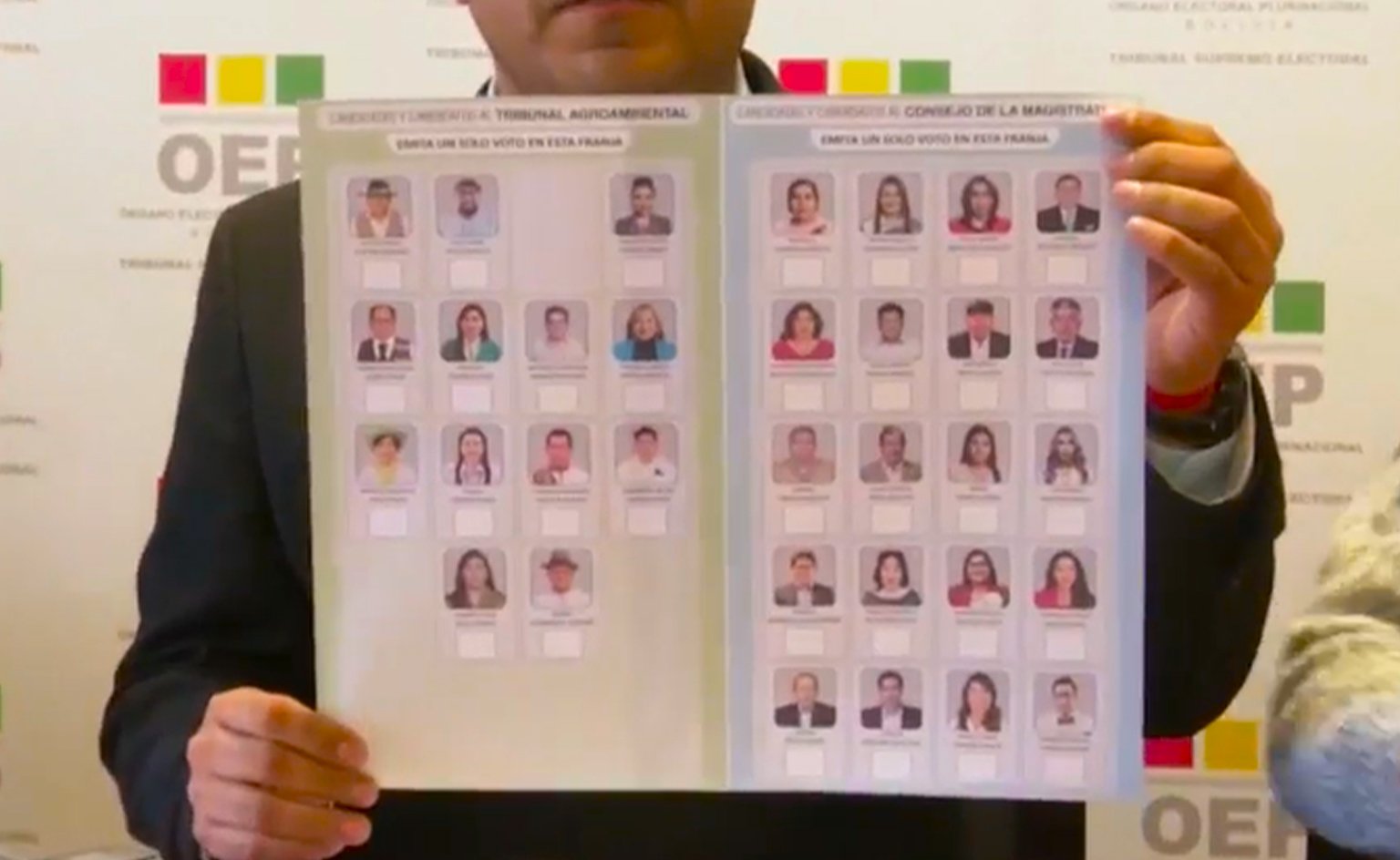 Vargas explicó que la Sala Plena del TSE ha aprobado un total de 10 papeletas de sufragio. Una de ellas será de alcance nacional, que incluirá a los candidatos para el Tribunal Agroambiental y el Consejo de la Magistratura. Las otras nueve papeletas contendrán los nombres de los candidatos al Tribunal Supremo de Justicia y al Tribunal Constitucional, cada una correspondiente a un ámbito departamental.