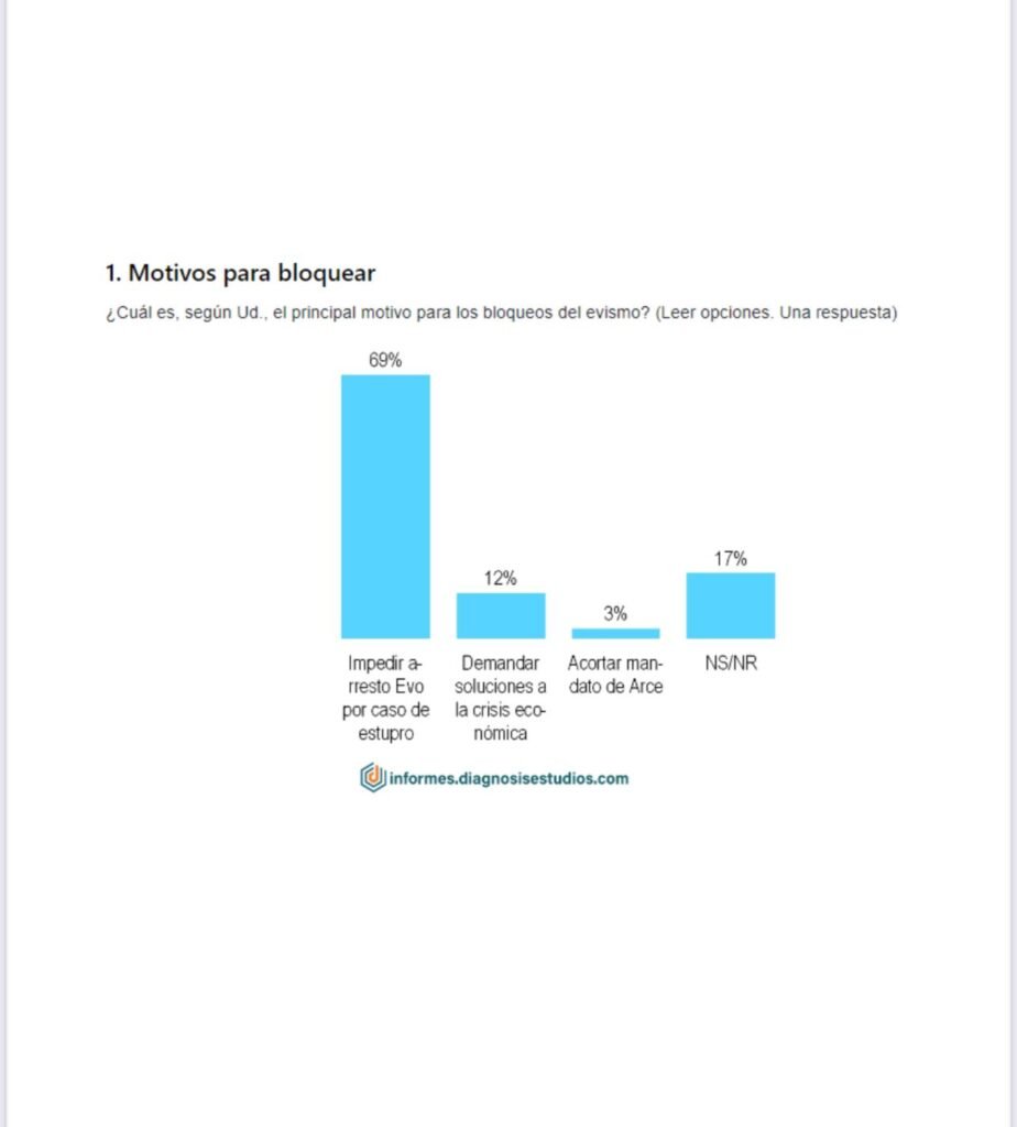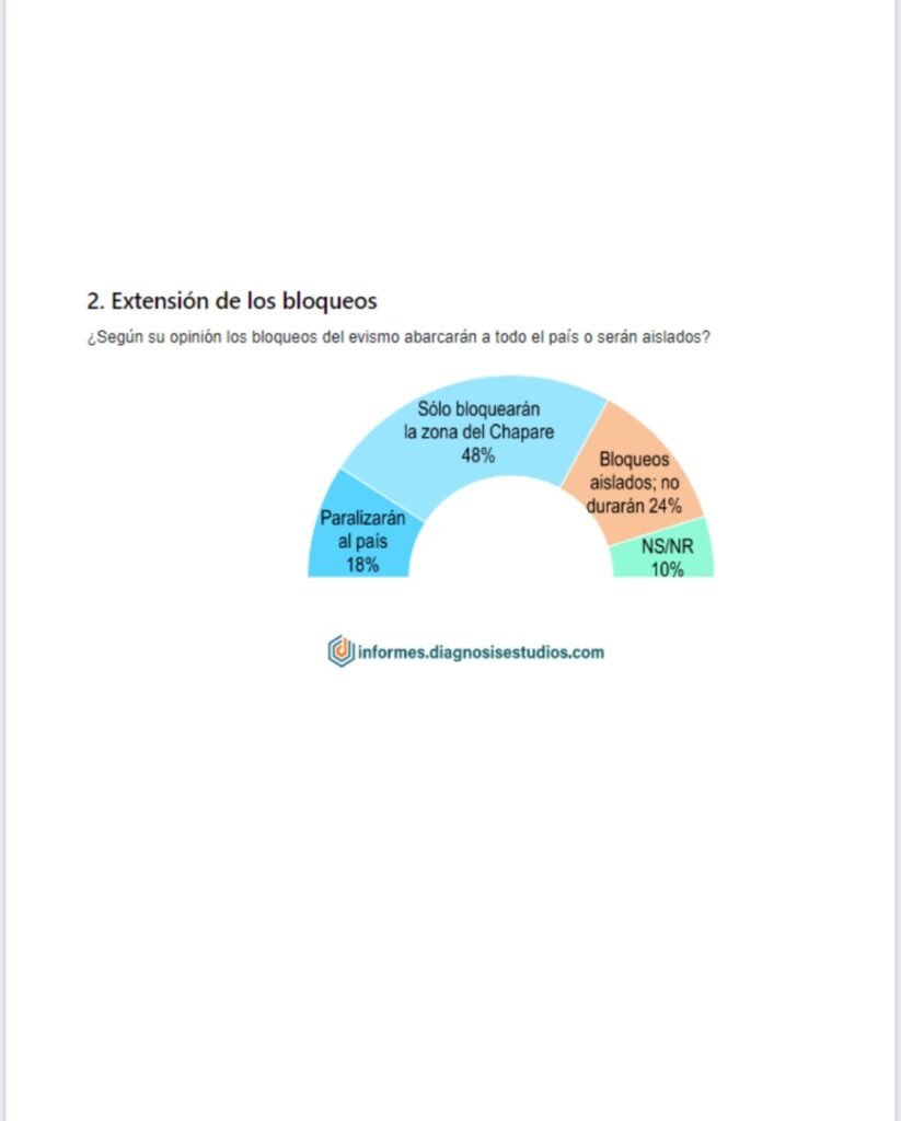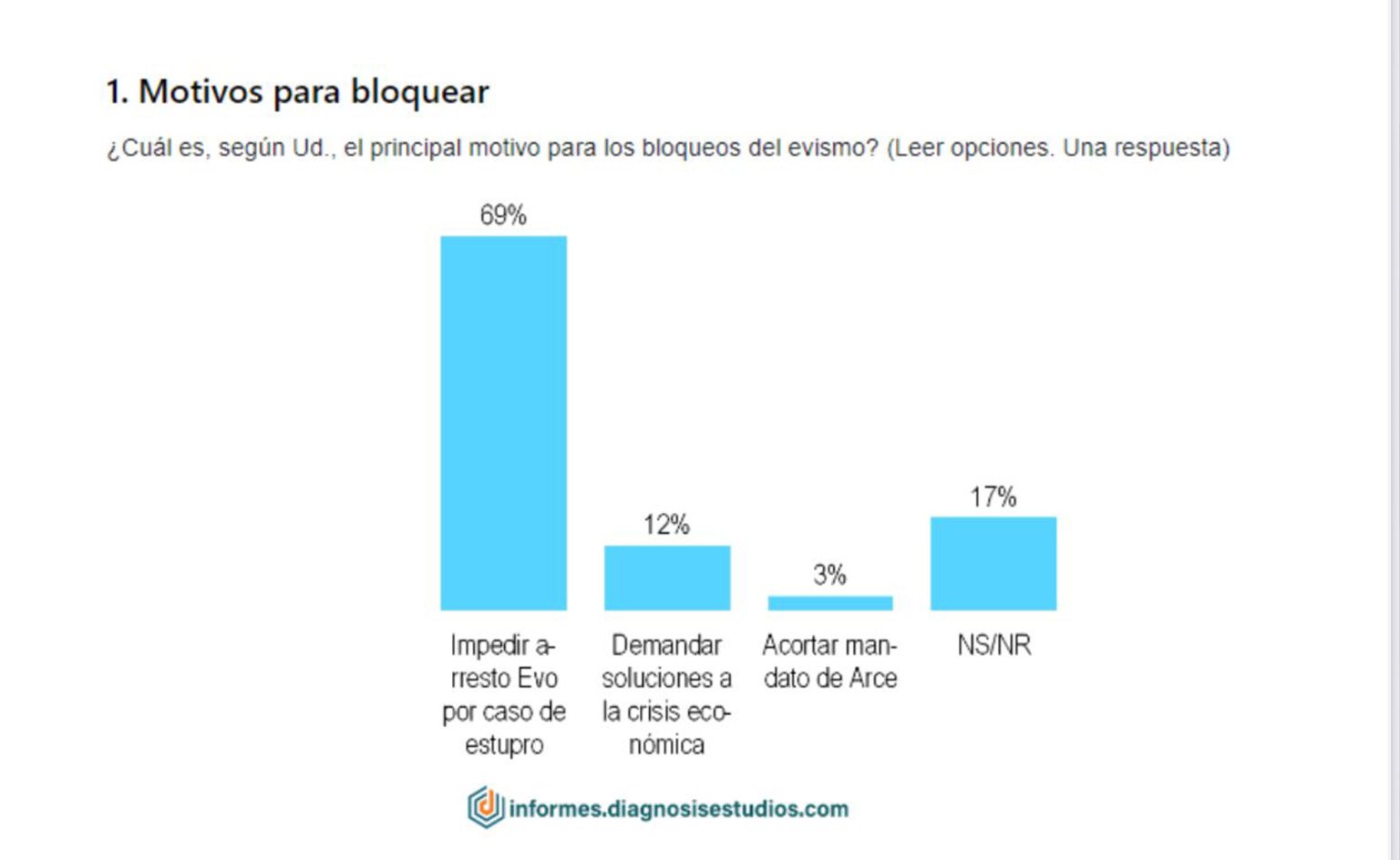 La encuesta subraya que la percepción dominante es que los bloqueos perjudican a todo el país y son una forma de defender lo indefendible, en referencia a las graves acusaciones contra Morales. Esta visión refuerza el discurso tanto del gobierno como de la oposición política, que han condenado los bloqueos como una medida que afecta negativamente a la economía nacional y que carece de legitimidad frente a las demandas de justicia.