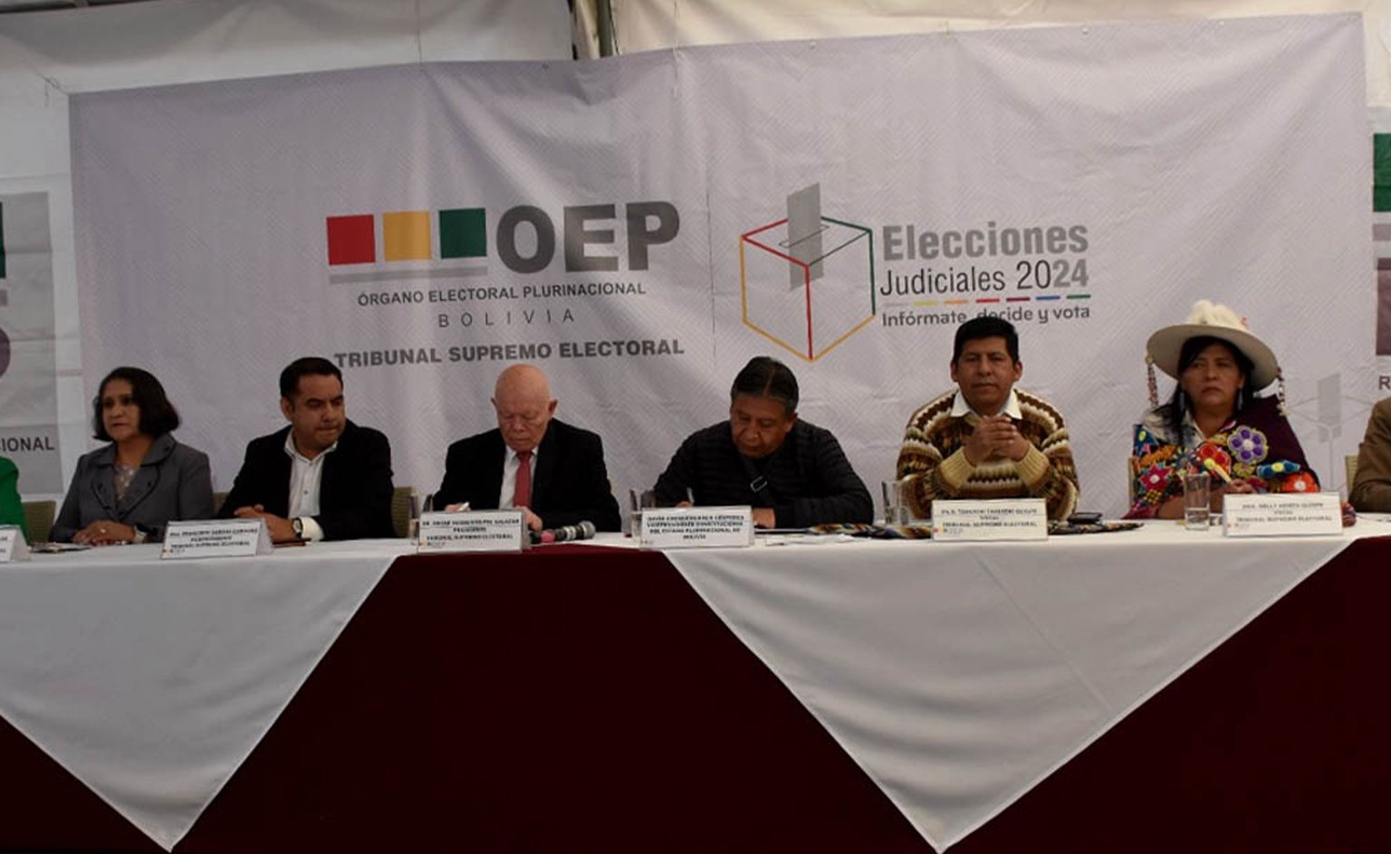 La Paz, 11 de noviembre de 2024 – El Tribunal Supremo Electoral (TSE) ha iniciado una reunión con representantes de los diferentes órganos del Estado y partidos políticos para tratar el fallo emitido por el Tribunal Constitucional Plurinacional (TCP), que paraliza las elecciones judiciales en algunos departamentos del país. El encuentro fue encabezado por el presidente del TSE, Oscar Hassenteufel, quien destacó el compromiso y responsabilidad de todos los actores presentes para buscar soluciones al problema.