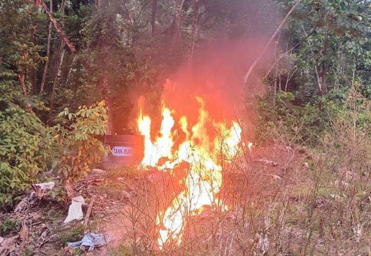 Señaló que los responsables de la actividad ilícita rociaron gasolina en el sector y, cuando los efectivos procedían a la incineración de las fábricas, fueron alcanzados por el fuego.