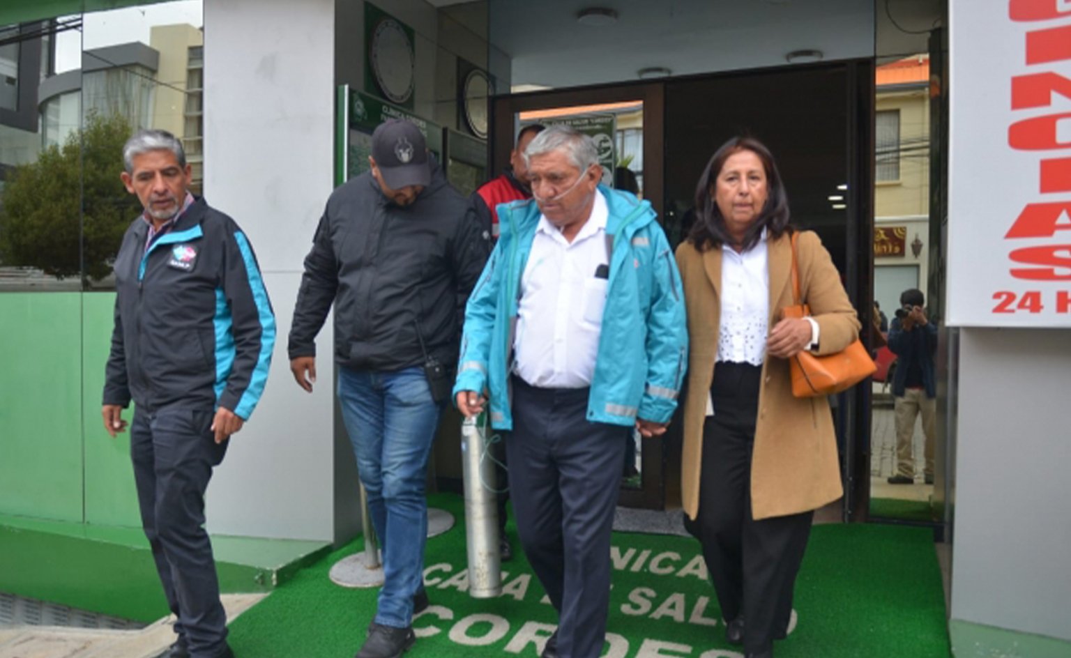 La Paz, 3 de diciembre de 2024 – El alcalde de La Paz, Iván Arias, dejó la clínica Cordes esta mañana, con oxígeno asistido, para presentarse en la Fiscalía y declarar como sindicado en la investigación por la mazamorra ocurrida el 23 de noviembre en Bajo Llojeta, que dejó 40 casas afectadas y cobró la vida de una niña de cinco años. Acompañado por su esposa, Mercedes Butrón, y su equipo de seguridad, Arias mostró signos evidentes de debilidad.