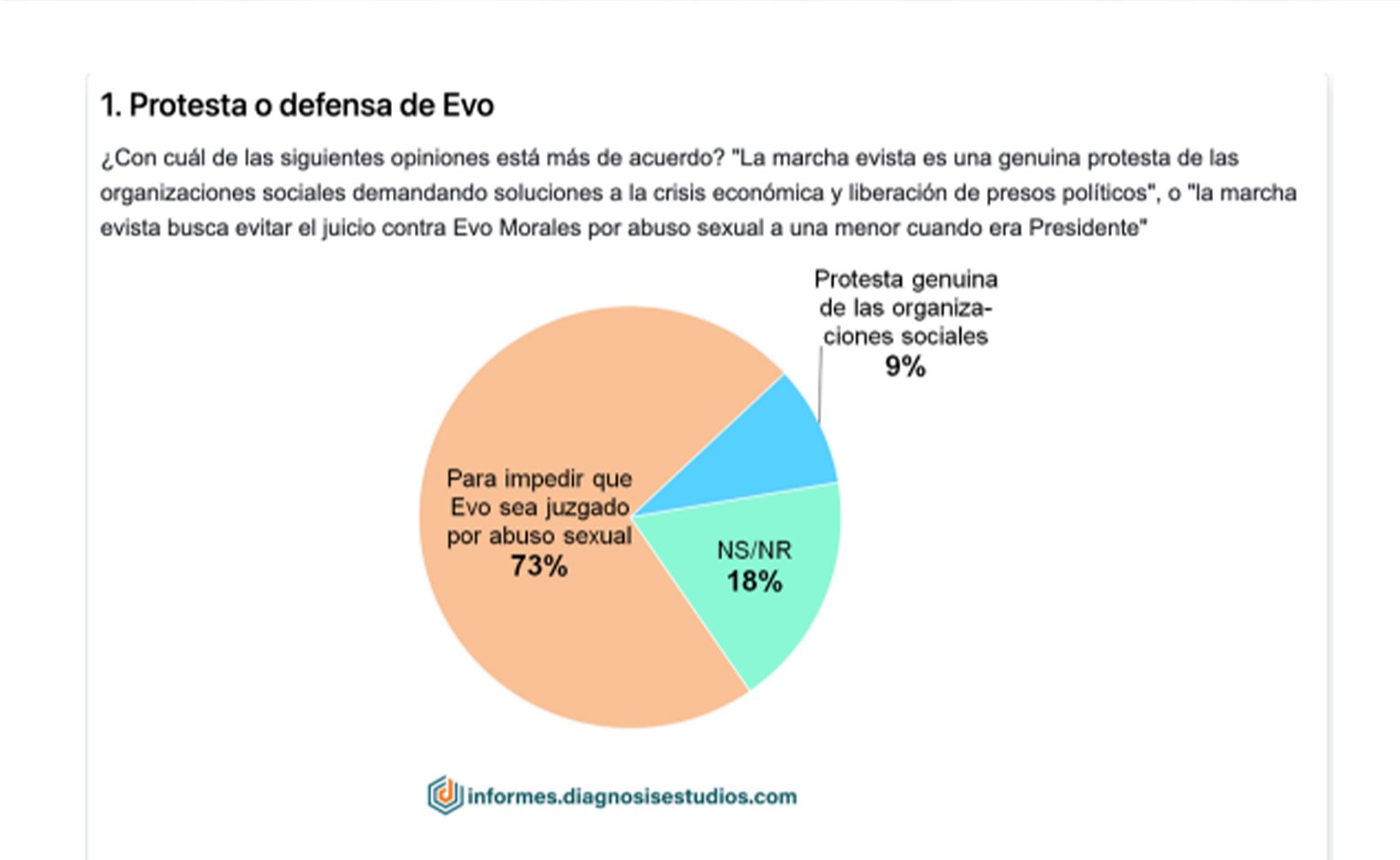 La Paz, 13 de enero de 2025 – Una reciente encuesta de Diagnosis realizada en las nueve regiones del país refleja que la marcha liderada por seguidores de Evo Morales, no cuenta con respaldo mayoritario ni legitimidad entre la población, aunque persiste el temor de que genere convulsión social en la ciudad de La Paz.