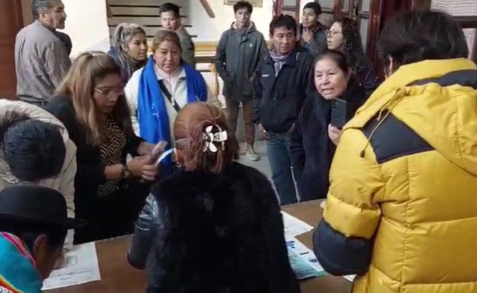 «¿Les han obligado para que vengan a firmar? La mayoría son funcionarios, ¿no?», se oye decir a la legisladora opositora mientras grababa con su teléfono celular a las personas que ingresaban al evento. En otro momento, interroga a una asistente preguntándole dónde trabaja, a lo que la mujer responde en aimara «Janiwa» (no).