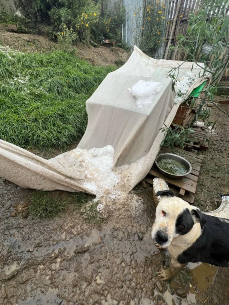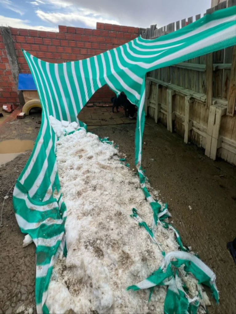 La Paz, 25 de marzo de 2025 – Las intensas lluvias y granizo que cayeron este lunes en varias regiones del departamento de La Paz provocaron severos daños en el albergue ‘Hocicos del Mundo Adopciones’, ubicado en la zona de Las Lomas. Los techos de las casitas de los perros quedaron completamente destrozados, y las lonas que les proporcionaban sombra fueron arrancadas por la fuerza del viento y el granizo.